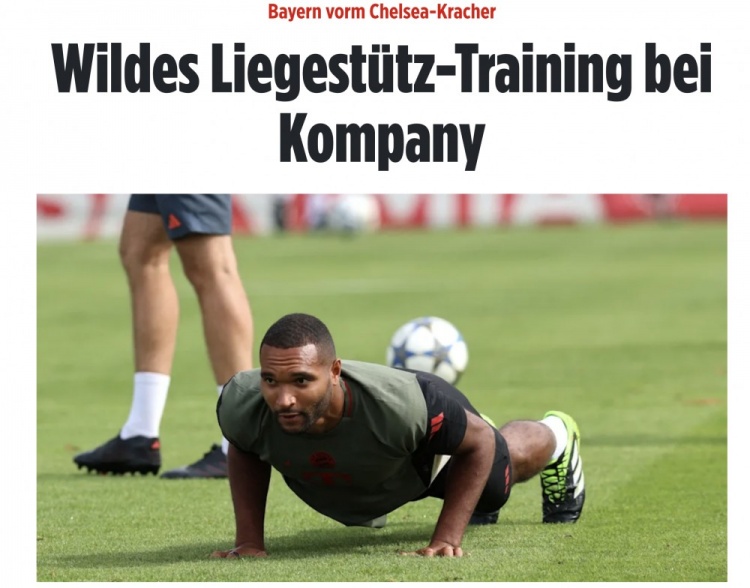 9月17日讯 拜仁将在周三晚的欧冠联赛阶段首轮比赛中对阵切尔西,德媒《图片报》透露在赛前的最后一次训练中,主帅孔帕尼引进了俯卧撑作为抢圈训练的惩罚内容。